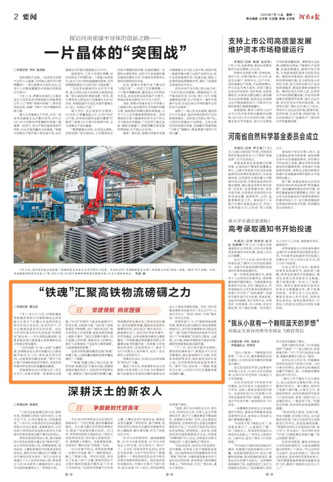 原題:《“鐵魂”匯聚高鐵物流磅礴之力》(轉載自2025年7月14日《河南日報》02版)。