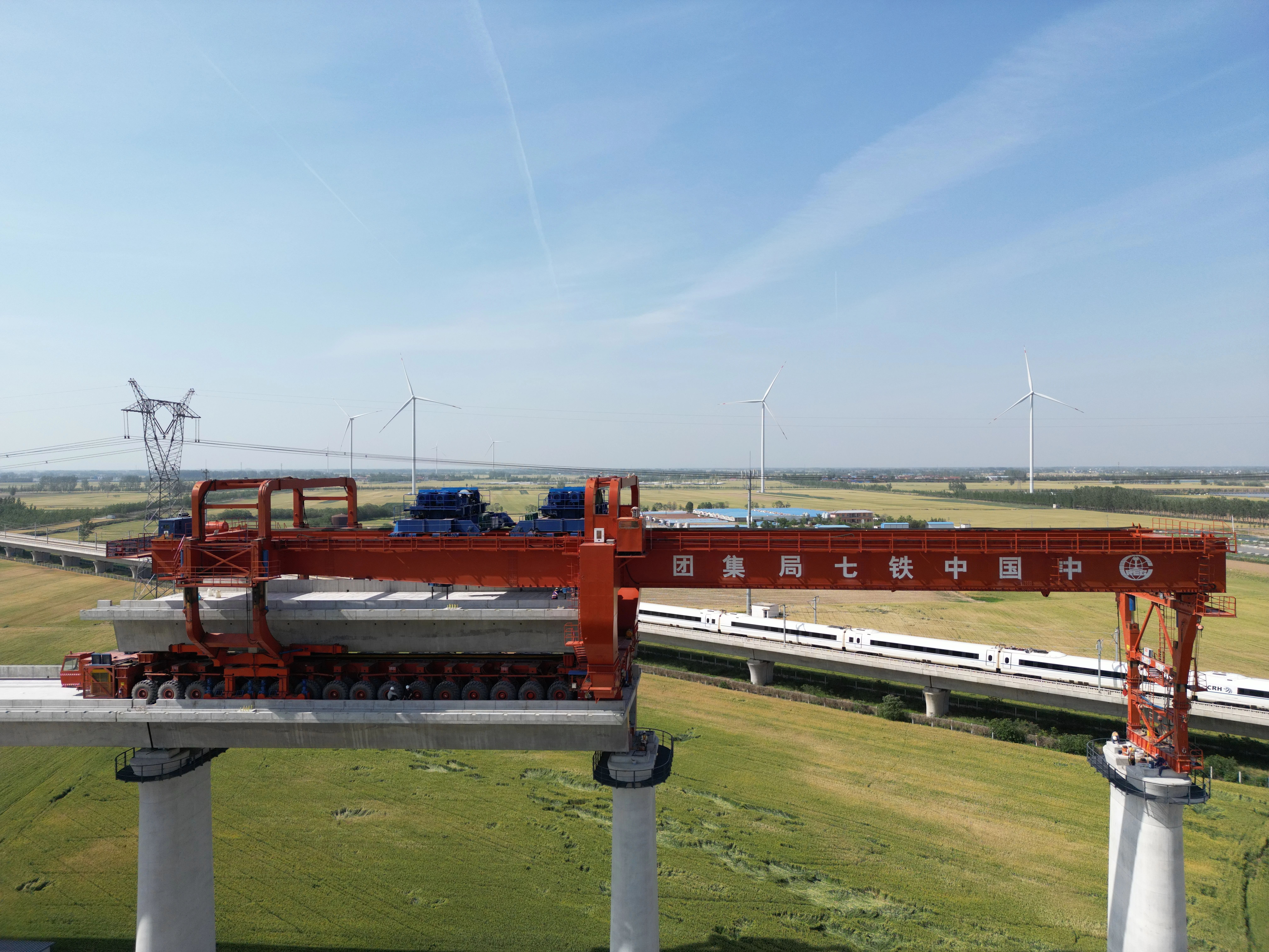 “旁邊就是鄭阜高鐵,為了保證施工中高鐵正常運(yùn)行,我們先在支架模板中建好橋墩和連續(xù)梁,再通過大橋轉(zhuǎn)體的方式,讓平漯周高鐵從它上方一‘跨’而過。”王文科說話間,一列高鐵裹挾著熱風(fēng)疾馳遠(yuǎn)去。