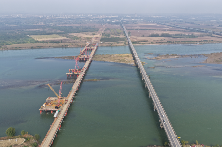 在項(xiàng)目副總工程師潘興看來,項(xiàng)目施工難度不小。“線路北引橋挨著洛陽原油商業(yè)儲備基地,中間還得穿越黃河河道、國家級濕地保護(hù)區(qū)、飲用水水源二級保護(hù)區(qū),與G208及改線的地方有5處交叉,又要跨越7條南北向交通動脈,安全風(fēng)險、環(huán)保要求和組織難度都特別高。”